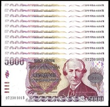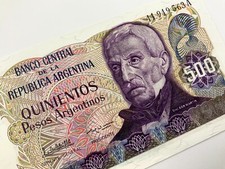 1984-1985. Red-brown on multicolored underprint. J.B.Alberdi at right. Constitutional meeting of 1853 on back. Watermark: young San Martin. SERIE A, B.