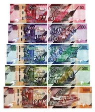1.6.2005. Brown, lilac, and light olive on multicolored underprint. President Daniel Toroitich Arap Mol at left center. Back: elephants and other animals. Watermark: value and cornerstone stripes added. Printer: DLR.