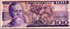 17.3.1998. Red and brown-orange on multicolor underprint. Nezahualcóyotl at right, Aztec figure at center. Series AV. EL omitted from bank titile, NUEVOS and PAGAR¡ A LA VISTA AL PORTADOR are omitted. 2 signatures. Series AX-BG. Back: Xochipilli statue. Printer: BdM.