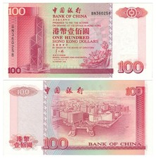1.1.2000. Hong Kong Special Administration Region Bank of China (Hong Kong) Limited. Red-violet, orange, and red on multicolored underprint. Bank of China Tower at left. Lotus flowers at lower center right. Aerial view of Tsimshatsul, Kowloon Peninsula at center right on back. Watermark: Chinze. Printer: TDLR (HK) Ltd (without imprint).