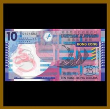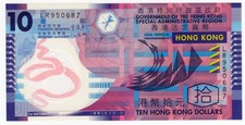 1.4.2007. Purple, blue, and multicolored. Geometric patterns. Polymer plastic. UV: square with 10 that fluoresces green. Signature of Henry Tang Ying-yen and Joseph Yam Chi-kwong.