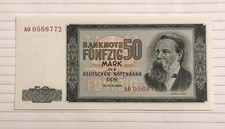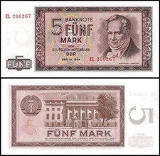1964. Green on multicolored underprint. Friedrich von Schiller at right. Zeiss factory in Jena at left center on back. Watermark: Hammer and compass. Arms at upper center right on back. As specimen.