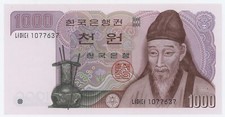 1992; 1998. Deep brown and deep brown-violet on multicolored underprint. Arms at lower left, Kim II Sung at right. Rural home at center on back. Watermark: arched gateway. As a specimen banknote. Red overprint at left face.