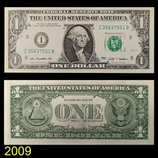 2009. Black. George Washington at center. Back: Great Seal flanking ONE.