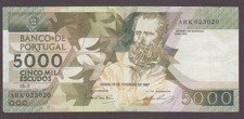 Portugal p183s: 5000 Escudos from 1987