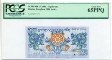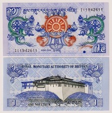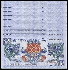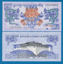 ND (2006); ND (2013). Dark blue and orange on multicolored underprint. Two dragons. Back: Simtokha Dzong palace. As a replacement banknote with serial number prefix Z, or fractional serial number prefix with numerator Z.