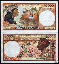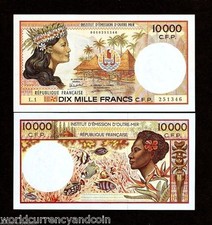 ND (1995). Multicolored. Tahitian girl with floral headdress at upper left, topuristic bungalows at center. Fish at center, Melanesian girl wearing flower at right on back. Watermark: two ethnic heads. Without NOUMEA or PAPEETE.