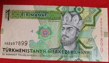 2014. Slate black and green on tan and multicolored underprint. Togrul Beg Turkmen. Back: Beylk Sparmyrat Turkmenbasynyn.