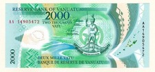 2014. Green and blue on green and blue underprint . Conch shell, waterway, Melanasian chief standing holding a spear, map. Back: birds and trees at center.