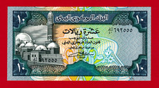 ND (1992). Blue and black on multicolored underprint. Al Baqilyah Mosque at left. Back blue and brown; Ma'rib Dam at center right, 10 at upper left and lower right with Arabic text Sadd Marib near lower right. Watermark: arms.