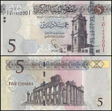 ND (2015). Portrait of Omar Al-Mukhtar. Foil band at right showing variable images of Omar Al-Mukhtar with rearing horse and crescent and star with denomination. Optical print with "10" at lower left. Microprinting below bank name. Back: Al-Mukhtar horsemen. Pearlescent stripe with octagon stars containing "10" and crescent and star, foil segmented security thread with demetalized rearing horse and Arabic text. Watermark: cornerstones, bust of Omar Al-Mukhtar with electrotype palette with "10".