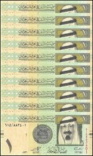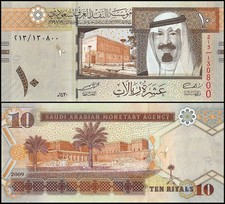 2009. Black and brown on multicolored underprint. King Abdullah at right, palace at center. Back: King Abdullah Historical Center in Riyadh.
