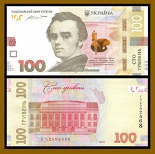 2014. Yellow and blue on multicolored underprint. Prince Volodymyr at right. Back: Volodymyr's berg in Kyiv. Watermark: Prince Volodymyr.