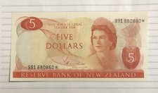 ND (1967-1981). Purple on multicolor underprint. Queen Elizabeth II at right. Back: Riffleman at center and plants. Watermark: Capt. James Cook. Printer: TDLR. As a replacement banknote with serial number suffix *.