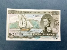 ND (1998). Dark green, deep olive-green and brown on multicolor underprint. Paille en Que orchids at center, Angel fish at lower left, arms at upper left. Ascending size serial number. Back: Cowry shells at upper left. Clock tower, autos at lower left, Yellow fin tuna at center, Flightles Watermark: Sea Tortoise. As a specimen banknote.