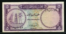 ND. Blue on multicolored underprint. Dhow, derrick, and palm tree at left. Watermark: Falcon's head.