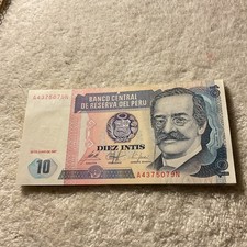 26.6.1987. Black, dark blue and purple on multicolor underprint. Ricardo Palma at right, arms at center. Back: Aqua and purple. Indian farmer digging at left and atother picking cotton at center. Watermark: Ricardo Palma. Printer: IPS-Roma. As a replacement banknote with serial number prefix Y or Z.