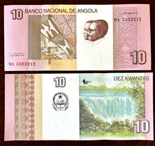 10.2012. Brown and rose. Jose Eduardo dos Santos and Antonio Agnostinho Neto at right center. Back: coat of arms at left. Luena waterfall at right.