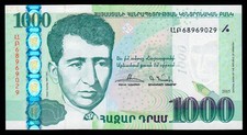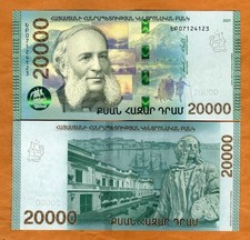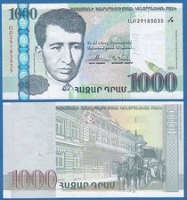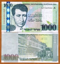 2015. Green and rose. Portrait of writer Yeghishe Charents. Holographic strip at left. Back: Old Yerevan scene including a two storied building and a horse drawn carriage.