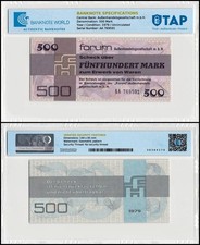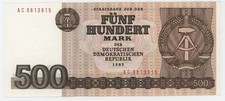 1985. Dark brown on multicolored underprint. Arms at right and as watermark. Government building Staatsrat (in Berlin) at center on back. As a replacement banknote with serial number prefix YA-YI, YZ, or ZA-ZQ.