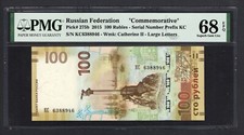 2015. Brown on multicolored underprint. Monument built on rock in water on face. Back of note features a medieval structure built on rock face. Serial number prefix "Kc".
