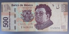 16.1.2017. Brown on tan underprint. Diego Riviera at center. Back: two of Riviera's paintings at center. Series BE.