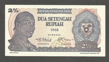 1968. Pale purple on multicolored underprint. General Sudirman at left. Arms at right. Jatiluhur Dam construction on back. Watermark: arms at right upper center. As a replacement banknote with serial number prefix Z.