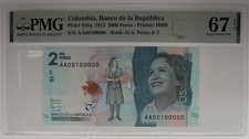 19.8.2015 (2016). Blue and multicolored. Debora Arango at center and right. Back: Cano Cristales river. As a specimen banknote.