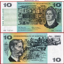 ND (1966-1972). Black on blue, orange and multicolored underprint. Francis Greenway at right, village scene at center. Henry Lawson and buildings on back. (1967).