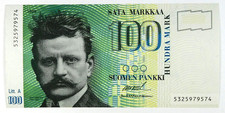 1986. Black on red, brown, and yellow underprint. Elias Lonnrot at left and as watermark. Punkaharju on back.