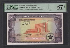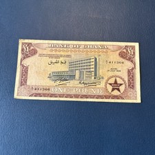 1.7.1958. Purple and orange on multicolored underprint. Bank of Ghana building in Accra at center. Cargo ships, logs in water on back. As specimen; perforated: CANCELLED.