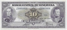 31.7.1952. Purple on multicolor underprint. Portrait Simon BolÃvar at left, Antonio Jose de Sucre at right. Similar to p31. Series E, F. 7 digit serial number. Back: Arms at right. Monument at center. Printer: TDLR. As a specimen banknote.