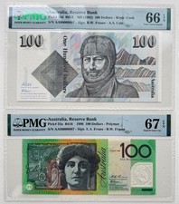 (19)96-(20)01. Black and green on orange and multicolored underprint. Opera stage at left, Dame Nellie Melba at center, stylized peacock OVD in transparent window at lower right. Sir John Monash and WWI battle scenes and insignia on back.