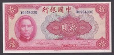 1940 China 10 Yuan Central Reserve Bank of China P#J12h Blue Signature SPC1929