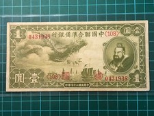 Federal Reserve Bank China 1 Yuan, 1938 Puppet Banks Dragon Banknote