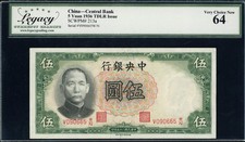 China 1936 5 Yuan Central Bank Note SCWPM-213a Legacy Very Choice New 64