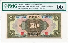 Central Bank of China China $5 1928 Shanghai PMG 55
