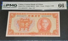 1936 1 Yuan - Central Bank Of China. P211a, PMG 66 (Gem Uncirculated).