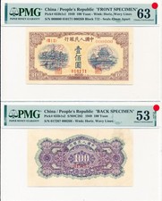 People's Bank of China 100 Yuan 1949 FRONT & BACK SPECIMEN PMG 63/53NET 2 Pcs
