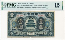Bank of China China 1 Yuan 1918 Shanghai Ovpt./Peking PMG 15