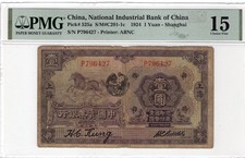 China 1924 Banknote 1 Yuan Shanghai, Industrial Bank, Great Wall, PMG 15, RARE