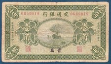 China (1925) Bank of Communications 10 cents banknote- Tsingtau Branch