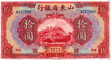 1925 THE PROVINCIAL BANK OF SHANTUNG CHINA 10 YUAN BANK NOTE
