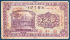 1925. Dark olive-green on light oange underprint. Two pavillions at left. Back: Light red-orange. Steam passenger train at center. Kuei Sui. (S/M #S91-).