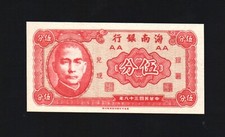 1949 China 5c Five Cents Hainan Bank Uncirculated