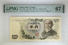 ND (1963). Dark green and brown on multicolored underprint. Hirobumi Ito at right and as watermark. Back brown; Bank of Japan at center. Double letter serial number prefix. Black serial number. As specimen.