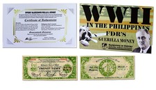 ND. Green with black text. Eagle in red-brown at center. EMERGENCY CERTIFICATE at bottom. Serial #7400 to 11,698. Back: Mt. Mayon and native scenes across center. 157x67mm. Commercially watermark paper. NOTE: The Second and Fourth Cagayan Issues are known with 3-line rubber stamping Registered/Countersigned/ Prov. Troas. (Troas, not Treas.) with dates from August through October, 1945. The Fourth Issue may also be found overprint in purple with ¢ and $ symbols.