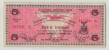 PHILIPPINES 5 Pesos 1943, P-S328a Philippines National Bank, Iloilo WWII. H2
