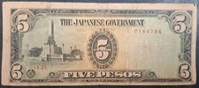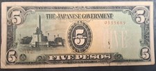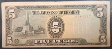 PHILIPPINES JAPANESE OCCUPATION WWII 1943 5 PESOS P-110 Grade AU.