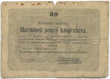 1.7.1849. Black. Arms without crown at bottom center. Signature of Kossuth and Ferenc Duschek as Governor of Hungary and Minister of Finance, respectively.
